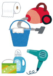• 洗濯機、掃除用具(掃除機、ぞうきん、ホウキ等) 、